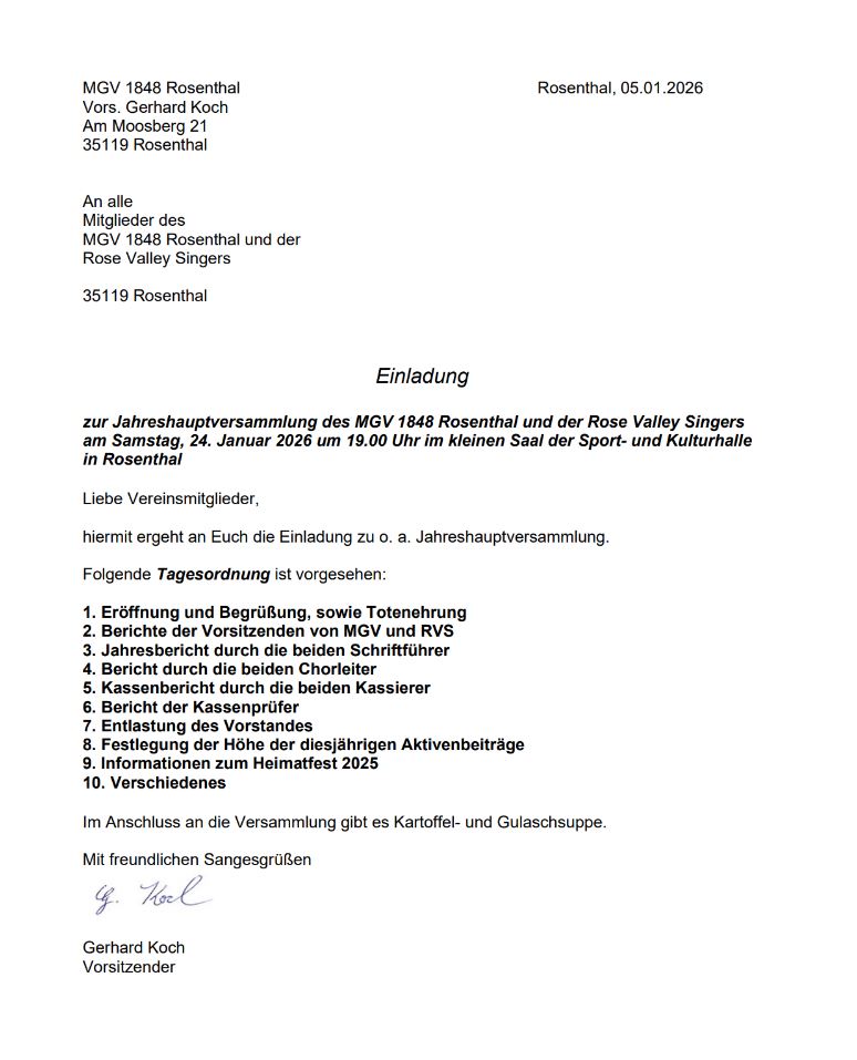 Einladung zur Jahreshauptversammlung des Vereins mit anschließender kurzer Informationsrunde zu aktuellen Projekten, geplanten Veranstaltungen und wichtigen Beschlüssen für das kommende Jahr. Alle Mitglieder sind herzlich eingeladen, an der Versammlung teilzunehmen, sich aktiv einzubringen und durch ihre Anwesenheit zur gemeinsamen Gestaltung der zukünftigen Vereinsarbeit beizutragen.